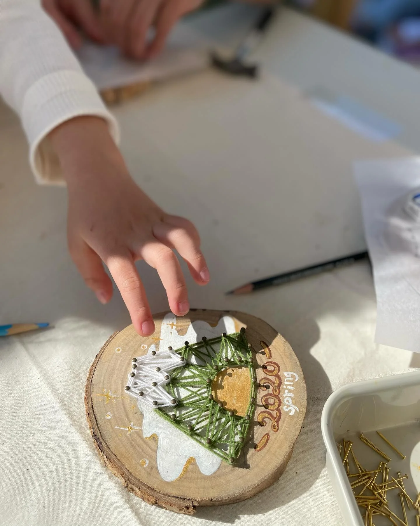 老師自己看著2020年時做的釘畫作品,